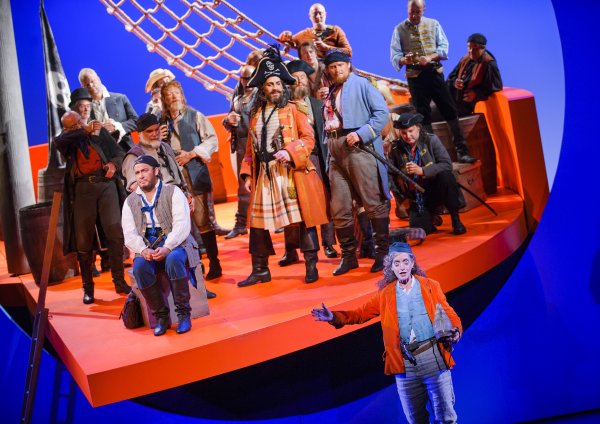 The final show of my whirlwind London trip was Mike Leigh’s joyous, colorful, and somewhat surreal new production of Gilbert and Sullivan’s “The Pirates of Penzance” for the English National Opera. For this charming operetta to work (as with all Gilbert and Sullivan works), the production needs the complete commitment of its cast to buy into the logic of the crazy world created by the G&S. That they did with giddy aplomb — I’m sure in no small part due to Mr. Leigh’s guidance. As conducted by David Parry and sung by a superb lineup of singer-actors, the performance sounded superb.