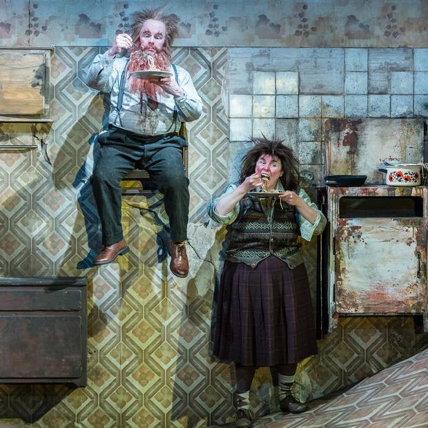 Despite the disappointment of “Golem”, I hopefully jumped onto a train headed for the essential Royal Court in Sloane Square. For me, the appeal of Roald Dahl’s tales has always been their slyly subversive characters and happenings. Well, in this stage version of “The Twits”, especially as adapted by bad boy playwright Enda Walsh, the outright nastiness of the titular characters was front and center – to the delight of children and adults alike in the audience, myself most definitely included. The Royal Court also spared no expense on realizing the Twits’ decrepit, rotting world; the show was a true visual knockout.