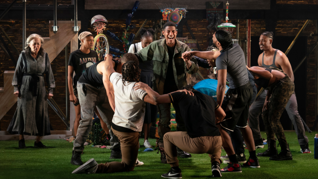 Billy Eugene Jones and the company of Aleshea Harris’s “On Sugarland” at New York Theatre Workshop (photo by Joan Marcus).