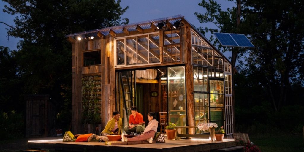 I recently had the opportunity to stream TheaterWorks Hartford’s environmental staging of Amy Berryman’s Walden, which recently wrapped up performances. Luckily, the outdoor production was captured on film and has been made available for on-demand viewing, giving those unable to trek up to Connecticut an opportunity to experience this new, thought-provoking play. Although the work takes place in a future during which today’s worrying warning signs have blossomed into full-blown calamities (e.g., nonstop climate-related disasters, an uncontrollable refugee crisis, etc.), the play itself is specifically set in a remote, self-sustaining cabin and farm where a couple – Stella and Bryan – has retreated to and made a quiet, secluded life for themselves as far away as possible from the world’s overwhelming troubles. Enter Cassie, Stella’s philosophically-opposed twin sister, and fireworks ensue.