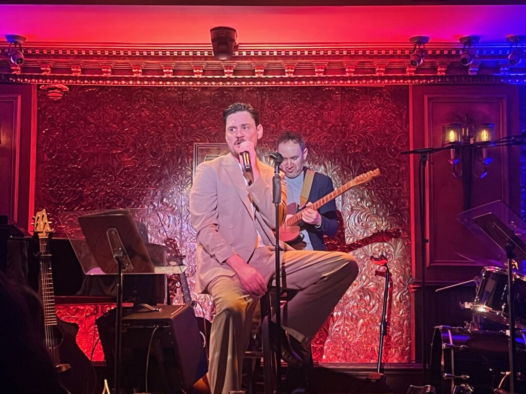 Earlier this week on the heels of the blizzard that practically shut down New York City, actor Tom Pecinka made his solo debut in a one-night-only appearance at 54 Below. Tony-nominated for his turn as the emotionally abusive front man of a band in Stereophonic, Pecinka shed the toxic masculinity that permeated his performance as Peter to reveal an easygoing guy with a longtime passion for the classic rock canon (given this obsession, it’s no wonder that he was cast in David Adjmi’s award-winning play, which features magnificent standalone worthy songs by Arcade Fire’s Will Butler).
