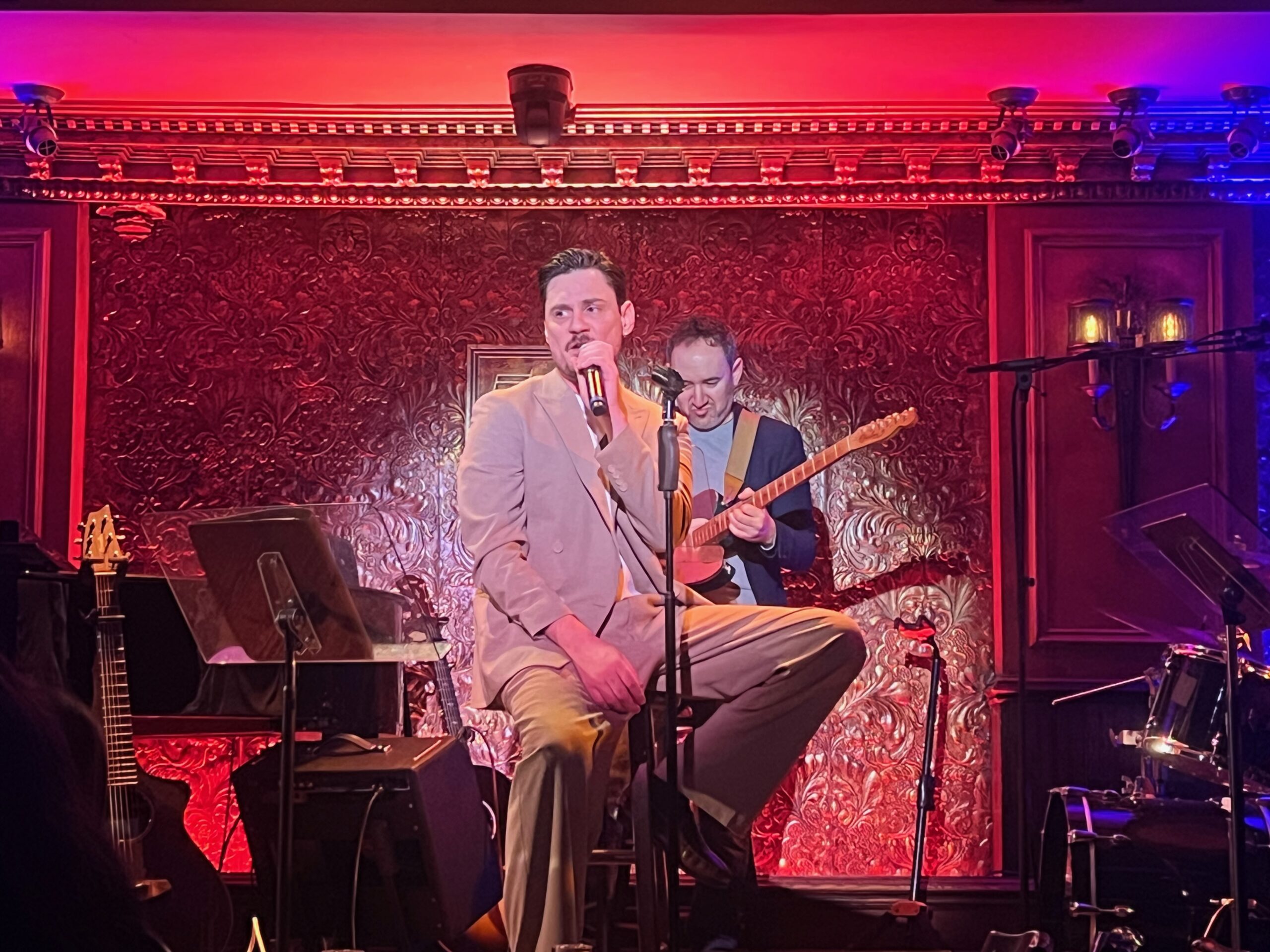 The evening’s special guest was the talented young star Casey Likes, who can currently be seen bringing down the house nightly a few blocks over in Heathers: The Musical at New World Stages (he’s also headlined the screen-to-stage versions of Back to the Future and Almost Famous). Together, they jammed to a loose and playful rendition of John Mellencamp’s “Hurts So Good”. Throughout the evening, it was abundantly clear just how much these songs have meant to and have shaped Pecinka as an artist and human being. It was a treat to witness this affinity in such close quarters.