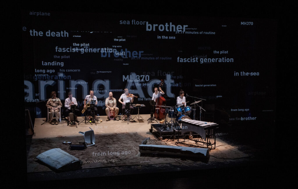 Last night at NYU Skirball, I had the opportunity to catch the North American premiere of Rimini Protokoll’s All right. Good night. in a co-presentation by L’Alliance New York as a part of Crossing The Line Festival (the work was previously staged across the pond at the Manchester International Festival). Masterminded by company co-founder Helgard Haug, the piece is, in short, a meditation on gradual loss and disappearance via parallel real life narratives — that of the mysterious vanishing of Malaysia Airlines Flight MH370 and the slow mental decline of Haug’s own father to the ravages of dementia.