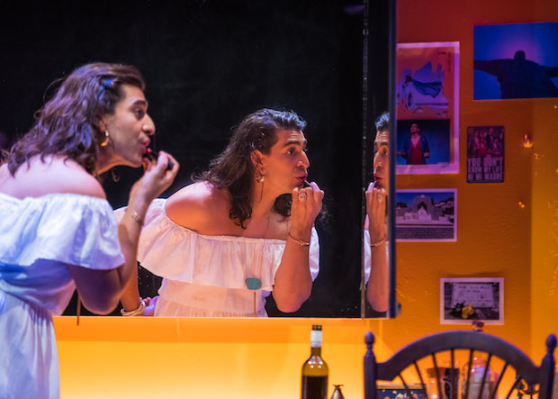 Ni Mi Madre is a beguiling play, a sort of prismatic, lightly-veiled autobiographical depiction of the actor/playwright’s challenging relationship with his larger-than-life Brazilian mother, Bete. The thing is, the play is told from the perspective of Bete, whom Mr. Soria channels in light drag, and it turns out to be a supreme act of empathy and forgiveness. Although Bete may claim that tough love was the driving mantra for her upbringing of her gay son, the objective events of the play make the case that her treatment of young Arturo bordered on abusive. Mr. Soria goes further up the chain, suggesting that this aggressive approach to child rearing may have been sparked by Bete’s own troublesome relationship with her mother (Mr. Soria’s grandmother). Thankfully, in final assessment, the work doesn’t shy away from the complexities of abusive behavior.