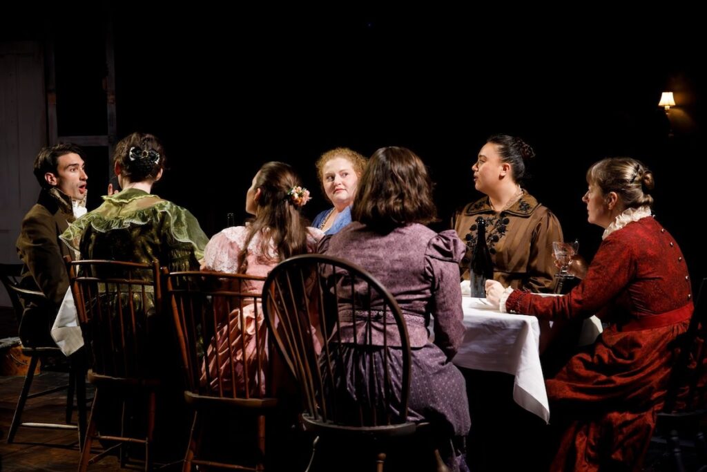 As with most Bedlam shows, the Off-Broadway production has been helmed by the company’s longtime artistic director Eric Tucker, whose directorial work generally tends to keep design elements subordinated to the collective storytelling. The same is true of Are the Bennet Girls Ok?, which features a functional, modestly suggestive multi-tiered set by John McDermott and is at its freshest and most robust when the ensemble takes the lead in driving the narrative forward. Indeed, in these seemingly devised — almost improvisational — sequences, the breathless beats of the performances are a thrill to witness.