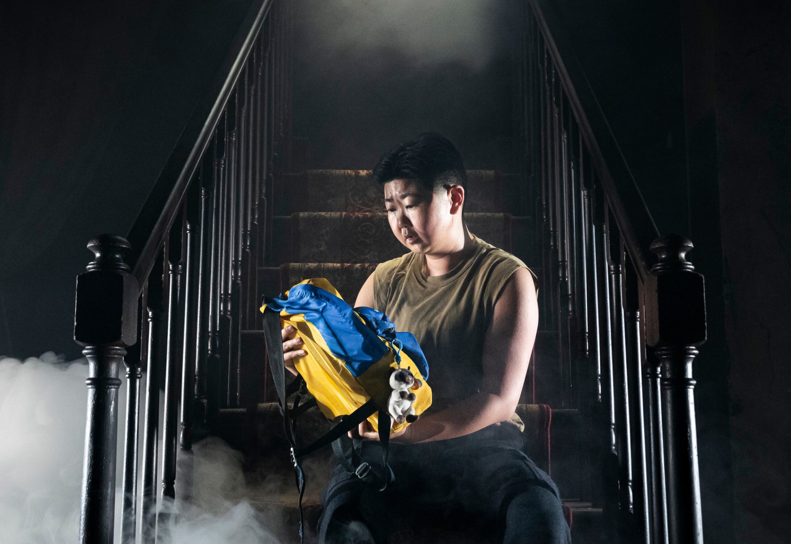 If you couldn’t already tell, Isabel is an aggressively surreal theatrical exercise through and through. In a series of succinct, deliberately opaque scenes — played with as much clarity as possible by a game all-queer/Asian cast — tang reframes and refracts notions of transgenderism, time, and storytelling genres (e.g., horror, fairytales, coming-of-age stories are all stealthily weaved into the work’s narrative fabric). Throughout, the imagery is compelling, namely as it relates to a seemingly living and breathing house, as well as a haunting lone staircase in the middle of the forest (and let’s not forget the backpack!) — such unsettlingly absurdist vibes wouldn’t be be amiss at Summerworks, which is currently drawing crowds not too far away at the wild project (in fact, tang penned Work Hard Have Fun Make History for last year’s iteration of Clubbed Thumb’s popular new play series). If there’s a takeaway from the whole affair, it’s that those brave enough to consider gender fluidity for themselves and pursue authentic lives are delving into a rabbit hole, risking never to return from whence they came.
