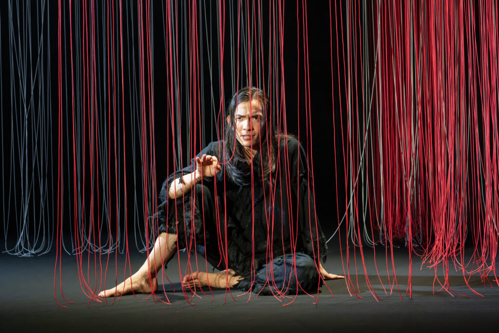 This fall, Japan Society in Midtown East is hosting the Yukio Mishima Centennial Series in celebration of the controversial yet influential Japanese novelist’s 100th birthday. Presented under the thematic banner of “Emergences”, the festival promises to be a fascinating and enticing opportunity to experience the brilliance and psychological depths of Mishima’s works through the multidisciplinary lens of the performing arts, encompassing Western theater, dance, physical theater, and traditional Japanese noh theater. Kicking off the series last week was Leon Ingulsrud’s stage adaptation of Mishima’s novel Kinkakuji (The Temple of the Golden Pavillion), starring the sensational Korean-American actor Major Curda — who shares a co-adaption credit with Ingulsrud — and featuring designs by acclaimed installation artist Chiharu Shiota. Together, the trio have successfully translated Mishima’s literary fever dream for the stage with emotional precision and considerable artistry.