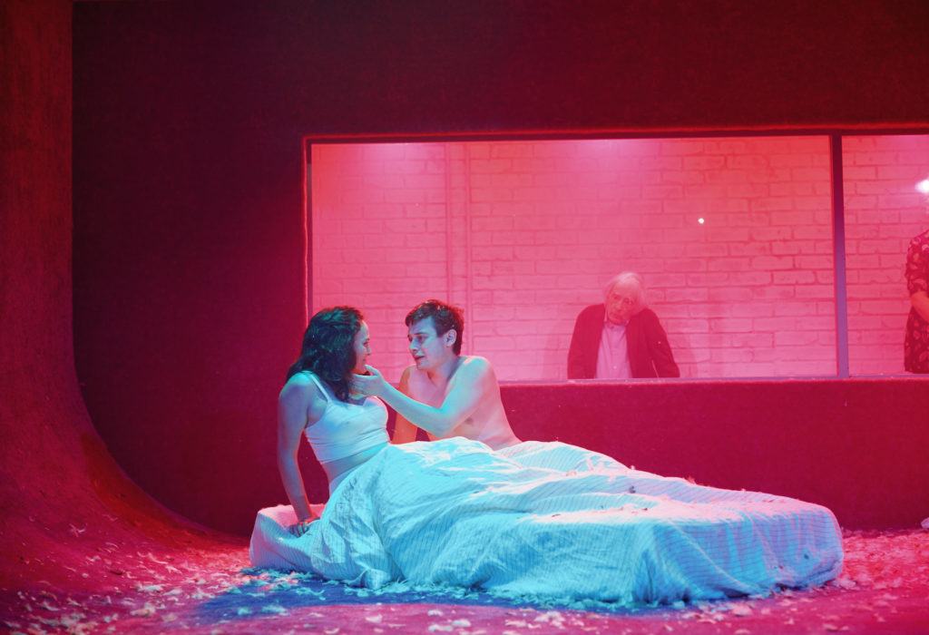 Francesca Carpanini, Uly Schlesinger, and Austin Pendleton in Rita Kalnejais’s “This Beautiful Future” at the Cherry Lane Theatre (photo by Emilio Madrid).