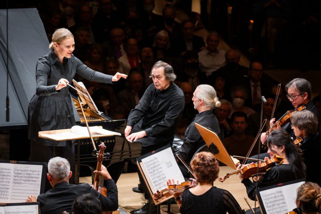 Susanna Mälkki conducts Ligeti’s Concerto for Piano and Orchestra with soloist Pierre-Laurent Aimard and the New York Philharmonic at David Geffen Hall (photo by Chris Lee).