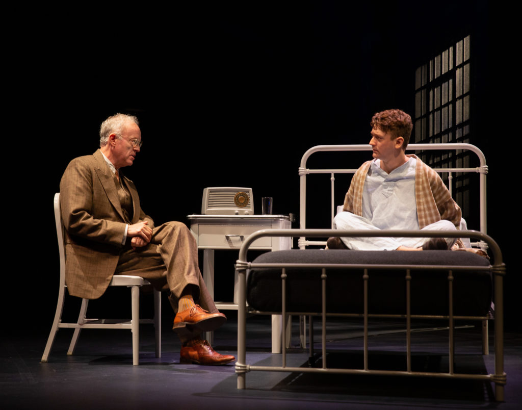 On the heels, of attending the superb revival of Suzan-Lori Parks’ Topdog/Underdog, I found myself in the audience of another affecting two-hander – this time Off-Broadway – by way of Joseph Dougherty’s Chester Bailey at Irish Rep. The play has been in development since 2012, most recently enjoying an acclaimed run at Barrington Stage Company in 2021. For its current New York premiere, the father-and-son acting team of  Reed Birney and Ephraim Birney have returned to the piece to play, respectively, a perceptive doctor and his young mental patient, who suffers from delusions upon suffering a horrific accident.