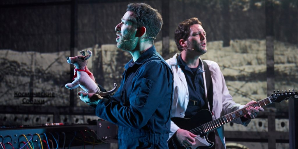 Last weekend, Van Hughes and Nick Blaemire’s Space Dogs opened Off-Broadway courtesy of MCC Theater. Set mostly in the Soviet Union during the Cold War (with a few interludes that flip the action to the United States), the new musical primarily tells the true story of the Chief Designer, a Russian scientist who is tasked with leading the Soviet charge in the Space Race, and Laika, the stray dog who helps him win the heated competition by being launched into space on a Soviet rocket ship.