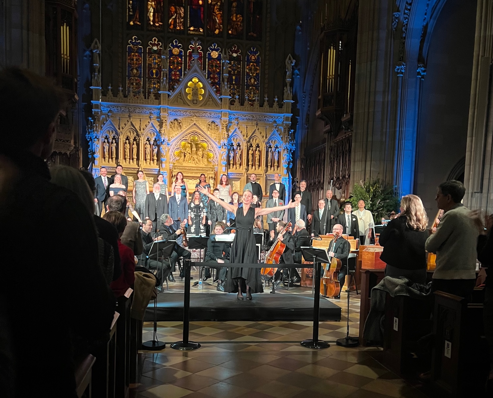 This year, however, there were a few relatively big changes made to the work’s presentation by conductor Melissa Attebury, who was appointed Trinity Church’s music director in December 2023 (last year, the great Jane Glover was already scheduled to lead Trinity’s performances of Messiah). In her first outing leading this beloved holiday tradition, Attebury has made the bold decision to only perform Part I, in addition to the famous “Hallelujah Chorus” from Part II (in a fascinating curatorial move, Parts II and III are now slated to be performed around Easter time, which some would argue is more thematically appropriate programming). Additionally, for the first time in several decades, the choir was off-book, which allowed for new blocking and gave the concert a felt distinctly theatrical feel.