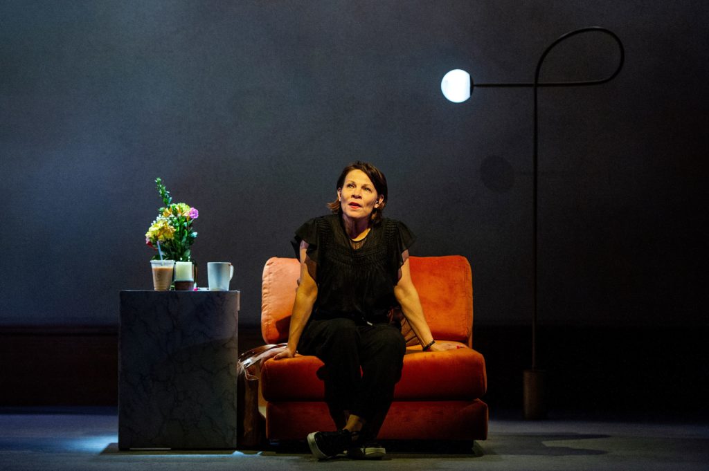 This fall, Audible Theater, in a co-production with The New Group, returns to in-person performances at the Minetta Lane Theatre with a limited two-week run of Wallace Shawn’s solo show The Fever starring recognizable television and film star Lili Taylor and directed – with tasteful minimalism – by Scott Elliott (The New Group’s artistic director). Mr. Shawn has long been one of downtown New York theater’s most idiosyncratic talents, and I still have vivid memories of watching his plays The Designated Mourner, Grasses of a Thousand Colors, and Evening at the Talk House. Written in 1990, The Fever was originally performed by Mr. Shawn, who used it as a platform to wrestle with the dubious origins of the world’s socio-economic disparity.