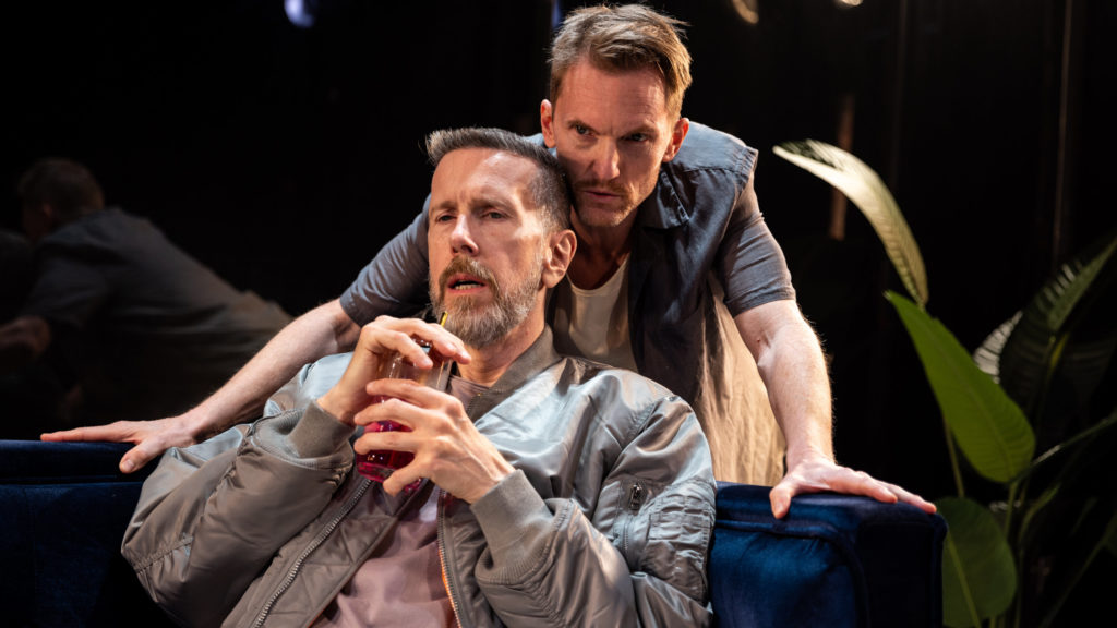 Then over at HERE, I attended Jacob Perkins’ elusive and seductive new two-hander The Gold Room (RECOMMENDED). In summary, I took the play to be a study in intimacy — or the lack thereof — in the lives of contemporary gay men, particularly those approaching middle age. From their love lives, to their professional careers, to their family relationships, the work turns an exposing and chilly spotlight on the emotionally stilted situations gays find themselves in. Stylistically, the piece stealthily melds a number of interactions between different men (or are they?) into a single flowing scene. Although this may be disorienting initially, it’s an elegant way to avoid depicting potentially under-written characters. Director Gus Heagerty’s staging for i am a slow tide brings Perkins’ play to deliberate, clear-eyed life, especially as performed by the excellent acting duo of Scott Parkinson and Robert Stanton, both of whom bring specificity and startling frankness to their performances.