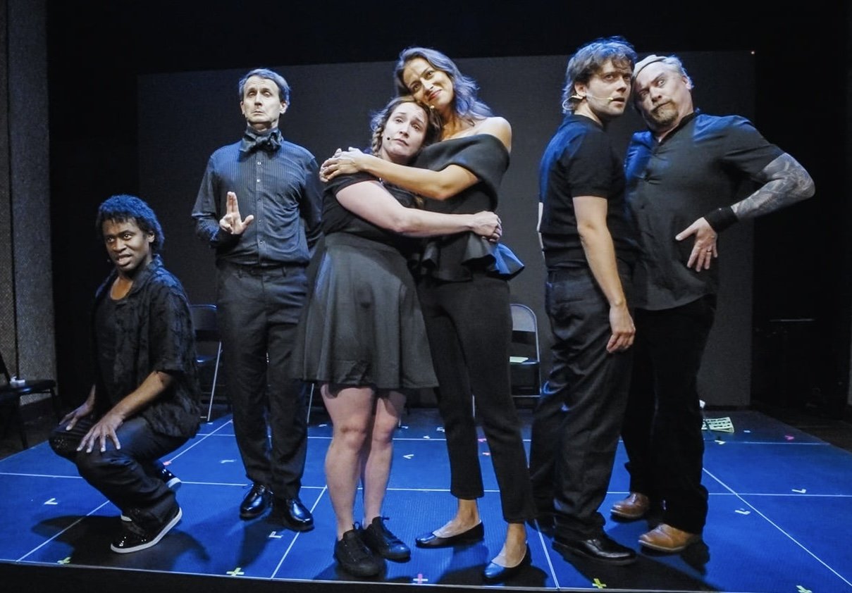 Also at Asylum NYC and also utilizing a play-within-a-play framework is Andrew Fox and Joel Sinensky’s new satire Slam Frank (HIGHLY RECOMMENDED), which takes up the late night post-Exorcistic slot at the Murray Hill comedy venue. In this seemingly unassuming show, the creative duo have set the story of The Diary of Anne Frank within the context of a theatrical adaptation being staged by a progressive, scrappy theater company, in which the title character is re-envisioned as a young queer Latinx woman and her family as an eccentrically diverse and motley group with representation across race, gender, and sexuality. Fox’s score is a delicious riff on various musical theater styles, smartly sending them up with lyrics that are invariably spot on. Sinensky’s book is razor sharp and hilariously insidious. But most importantly, the material isn’t afraid to push buttons and stir the pot. And boy, does it. No one is spared in Fox and Sinensky’s attempt to expose the ridiculousness of the current societal fun house we’ve created. As such, this ruthless little musical holds a mirror to the largely absurd world we live in. Indeed, things are repeatedly turned on their head so that you eventually don’t know which way is up, leaving your head spinning. Like Exorcistic, Slam Frank has a delirious ball sending up contemporary theater via sight gags big and small, which are brilliantly spun off by a game cast that’s exuberantly led by Olivia Bernábe as Anne Frank. And like Alli Miller and Chadd McMillan’s directorial work for Exorcistic, Sam Lafrage stages a tight production that fits snugly on the small stage. It’s hard to tell whether the cast is in on the joke, but by the time we all reach the sobering punch line, it’s too late — Slam Frank has the final say by having already subversively burnt the house down, but not without a winning smile and a chuckle. Indeed, unlike the early show, this late night offering ultimately has more on its mind than merely a good time.