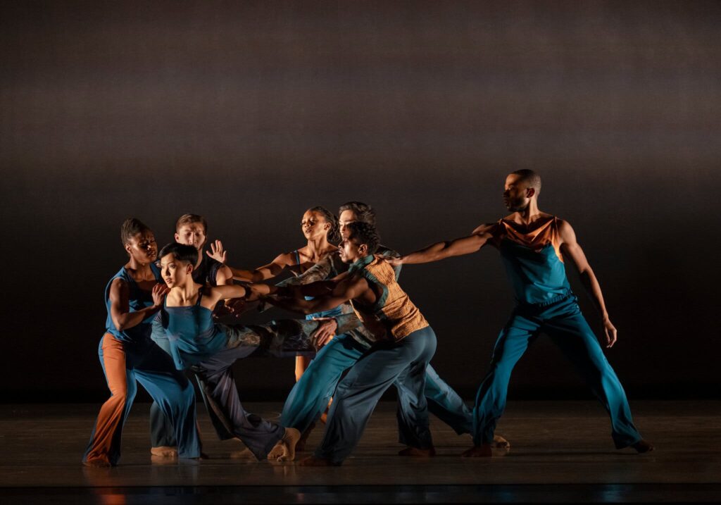 Best of all, however, were a couple of established showstoppers from the company’s rich repertoire, starting with Revelations, which I experienced this time around luxuriously accompanied by live music. The added task of having the dancers calibrate to the live music-making brought about an organic dynamism to the classic that sometimes eludes performances of the piece when danced to recorded music (spirituals were meant to be heard live and sung with abandon, after all). But perhaps best of all was the chance to revisit Alonzo King’s 2000 Following the Subtle Current Upstream, a thrilling and timeless centerpiece for a large ensemble that only seems to reveal its disparate layers of genius with age.