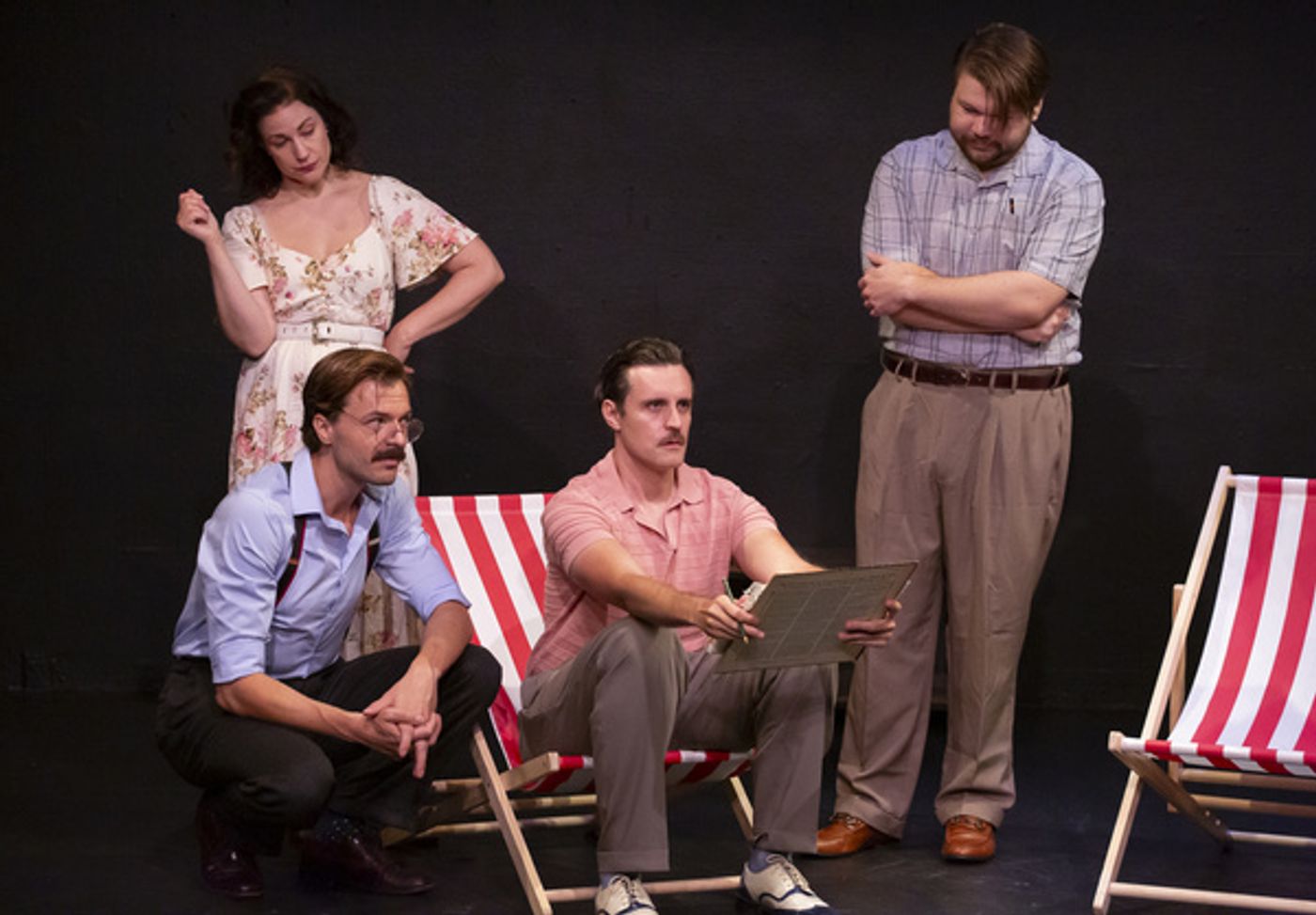 Taking a deeper dive into the stickiness of the business of Hollywood is Cameron Darwin Bossert’s The Animals Speak: Walt Disney in South America (HIGHLY RECOMMENDED), the third installment of Thirdwing Stage’s “A Venomous Color” series, a trilogy of plays that successfully demystifies the early formative days of Walt Disney and his corporate empire (the previous entries include The Fairest in 2021 and Burbank in 2022, both also presented at The Wild Project in the East Village). This portion of the saga finds Disney, his wife Lillian and a few of his key creatives — including a young Mary Blair, one of the iconic animators of the corporation — on a goodwill tour of South America (namely Brazil, Argentina, and Chile) to stave off the encroachment of Nazism in the region during World War II. Untethered from their regularly scheduled programming, the motley crew find themselves assessing their lives at arm’s length, in the process refining the company’s aesthetic and agenda. Throughout, the writing is exceptional, a loving yet clear-eyed tribute that’s organic and often genuinely revealing, and rarely does it resort to sensationalism. Obviously under budgetary constraints, the production has been staged essentially on a bare stage. Nevertheless, The Animals Speak has been elegantly mounted and directed with clear intent. All the performances are spot on — particularly Bossert and Ginger Kearns as Walt and Lillian, respectively — bringing raw humanity and intriguing dimensionality to the figures behind the so-called magic.