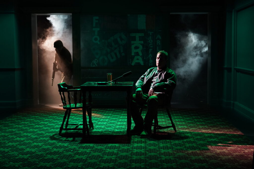 Irish Repertory Theatre seems to have a hit on their hands this fall with the Chelsea-based company’s tense and satisfying Off-Broadway production of Leo McGann’s new psychological thriller The Honey Trap (HIGHLY RECOMMENDED). Essentially, the play depicts the story of Dave — and a former British soldier stationed in Northern Ireland during the Troubles — who travels to Belfast seeking details about the murder of his friend and fellow soldier, who was killed by the IRA by being lured by two attractive young women at a bar way back in 1979 (hence the play’s title). As written, the play is a sturdily written revenge tale that is ingeniously structured to yield to a nail-biting second act that had me on the edge of my seat. At the center of the production as Dave is Michael Hayden’s restless, simmering, and immensely charismatic performance, which percolates with and vacillates violently between guilt and rage over the course of the meaty play. Also excellent is Molly Ranson — who gives an expertly modulated performance as a graduate student whose work to document the Troubles via oral histories leads Dave to his prey — as is Samantha Mathis as the woman who holds the answers to Dave’s long-held questions (no spoilers here!). As the younger iterations of Dave and his doomed friend Bobby, Daniel Marconi and Harrison Tipping, respectively, are convincing as confused, testosterone-fueled solders trying their best to make sense of being strangers in a strange land. And as their equally young seducers, Annabelle Zasowski and Doireann Mac Mahon give subtly layered performances that are chillingly poker-faced. Director Matt Torney does a terrific job of effectively balancing present day scenes and flashbacks — thanks largely to Charlie Corcoran’s elegantly malleable set and careful shifts in Michael Gottlieb lighting — as well as maintaining the smoldering suspense throughout.