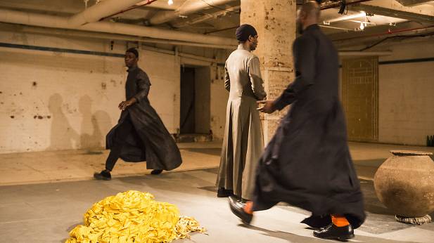 One of the great pleasures of Coil, which mounts shows in various venues throughout the city, is the opportunity to be exposed to new spaces. This year, probably the most fascinating space to be unlocked was the series of subterranean corridors and cavernous halls in the bowels of Westbath Artists’ Housing at 55 Bethune Street in the West Village. Coil, being Coil, saw this as a chance to fully engage in these unique new spaces, creating panoramic vistas and intimate situations that would have been otherwise impossible in more conventional auditoriums. Shows such as niv Acosta’s grooving and immersive DISCOTROPIC (Coil) and Kaneza Schaal’s “active art installation” GO FORTH (Coil) took full advantage of all the nooks and crannies and epic expanses of 55 Bethune. In addition to being dynamic and participatory site-specific experiences, two other shows continued to blur the line between performer and audience: Michael Klïen’s interactive history lesson Excavation Site: Martha Graham U.S.A. (Coil) and The Bureau for the Future of Choreography’s sardonic Score for a Lecture (American Realness) immersed the audience even further by giving them a voice within the narrative.