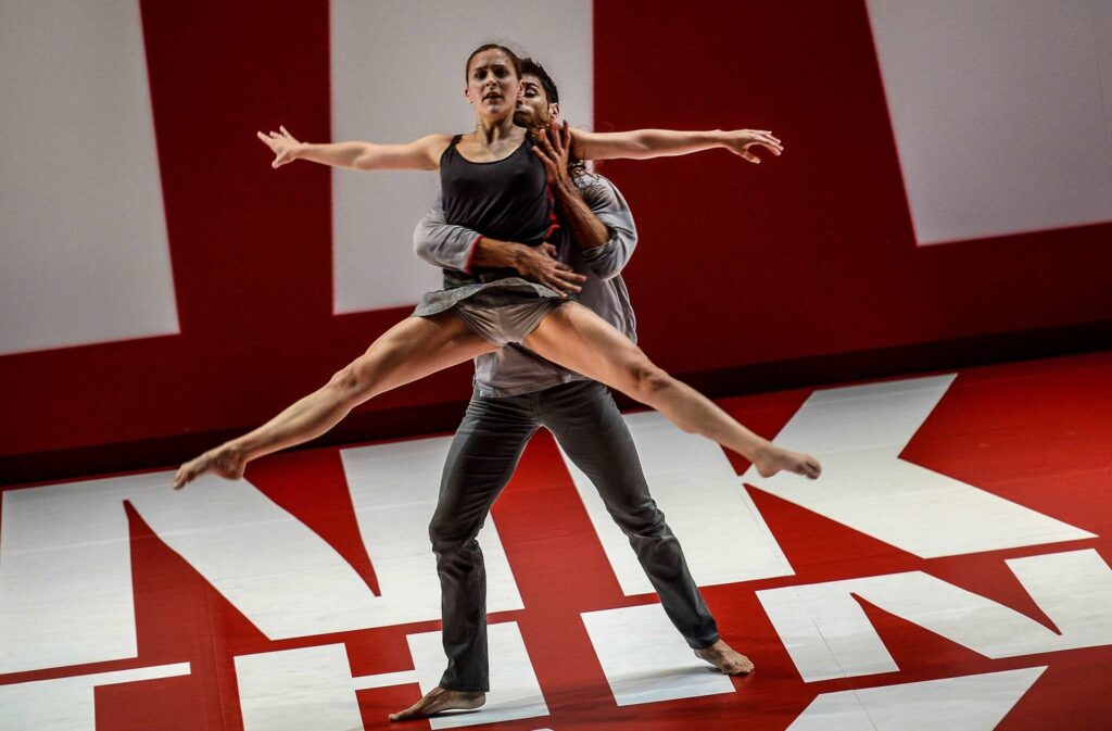 Dance Reflections concluded its first weekend at the Perelman Performing Arts Center (“PAC NYC” for short) with Reflections: A Tryptych by Benjamin Millepied (RECOMMENDED). For this collection of dances, the French choreographer — who was formerly married to film star Natalie Portman, whom he met during the filming of Darren Aronofsky’s Oscar-winning film Black Swan — has brought together three of his ballets, which he created between 2013 and 2016. Performed by Millepied company’s company L.A. Dance Project, the works represent three aspects of human connection, starting with Reflections (2013), a quiet meditation on memory and yearning. Despite its contemplative air — the tone is set by David Lang’s hauntingly subdued score and the internal sensitivity (which may read as tentativeness) of the steps and movements — the feelings it elicits are big, real, and raw, as indicated by Barbara Kruger’s textually in-your-face designs. The program continued with Hearts & Arrows, perhaps the most accessible but least interesting of the three. Set to a driving minimalist score by Philip Glass (composed for the 1985 film Mishima: A Life in Four Chapters), the piece exemplifies Millepied at his most conventional and crisp — here, emotions take on somewhat of a “soundbite” kind of quality — calling to mind a laidback Justin Peck. Ending the triple bill was On the Other Side, the evening’s most satisfying and artistically resounding work. Again set to music by Glass — this time to a suite of the ubiquitous composer’s piano études — the piece is an affecting depiction our collective human experience, combining the penetrating introspection of Reflections and the choreographic allure of Hearts & Arrows. The dancing throughout by the L.A. Dance Project dancers was strong; it’s abundantly clear that they are acclimated to Millepied’s tendency for casualness that opens up to deep empathy and insight. Overall, the three dances — here presented together for the first time — effectively merged movement, design, and music with understated finesse and a mind for thoughtfully conveying the human condition.