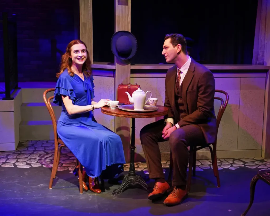 Recently shuttering at 59E59 Theaters was New Jersey Repertory Company’s production of How My Grandparents Fell in Love (RECOMMENDED). Framed as a school presentation in which a student’s research of her family’s history uncovers the story of her grandparents’ escape from the fascist terrors rising in Poland leading up to World War II, the generic title explains precisely what the show is about. In essence a small-scale single act two-hander musical, the piece unfolds in a straightforward manner with little surprise. That being said, the production has a number of things going for it, namely Neil Berg’s lovely, well-crafted melodies and the elegantly direct lyrics by Berg and Cary Gitter. Despite the strictly straightforward storytelling of Gitter’s book, there are solidly old fashioned charms to be had in witnessing the budding romance between the dashing Charlie and the intelligent but headstrong Chava. Indeed, much of the first half of the show is contained within musical rom-com territory (think The Last Five Years and Two Strangers), complete with gentle tug-of-war scenes that you’ve likely seen in several other iterations. The show’s second half, however, delves into the dire circumstances of their escape from Poland, which lends the piece much needed gravitas, sense of urgency, and poignancy. Although I appreciated the expert onstage playing of sole musical accompanist Aaron Benham on keys, the musical could benefit from expanding the orchestrations for a string quartet, which would allow some of the score’s more sweeping songs to soar as they were meant to. Efficently directed and designed by SuzAnne Barabas and Jessica Parks, respectively, the production unfolds unfussily, leaving it up to the two performances to take the spotlight. Thankfully, Harris Milgrim as Charlie and Becca Suskauer as Chava inject their portrayals with specificity and lots of personality. To boot, they exhibit disarming chemistry and Broadway quality vocal chops.