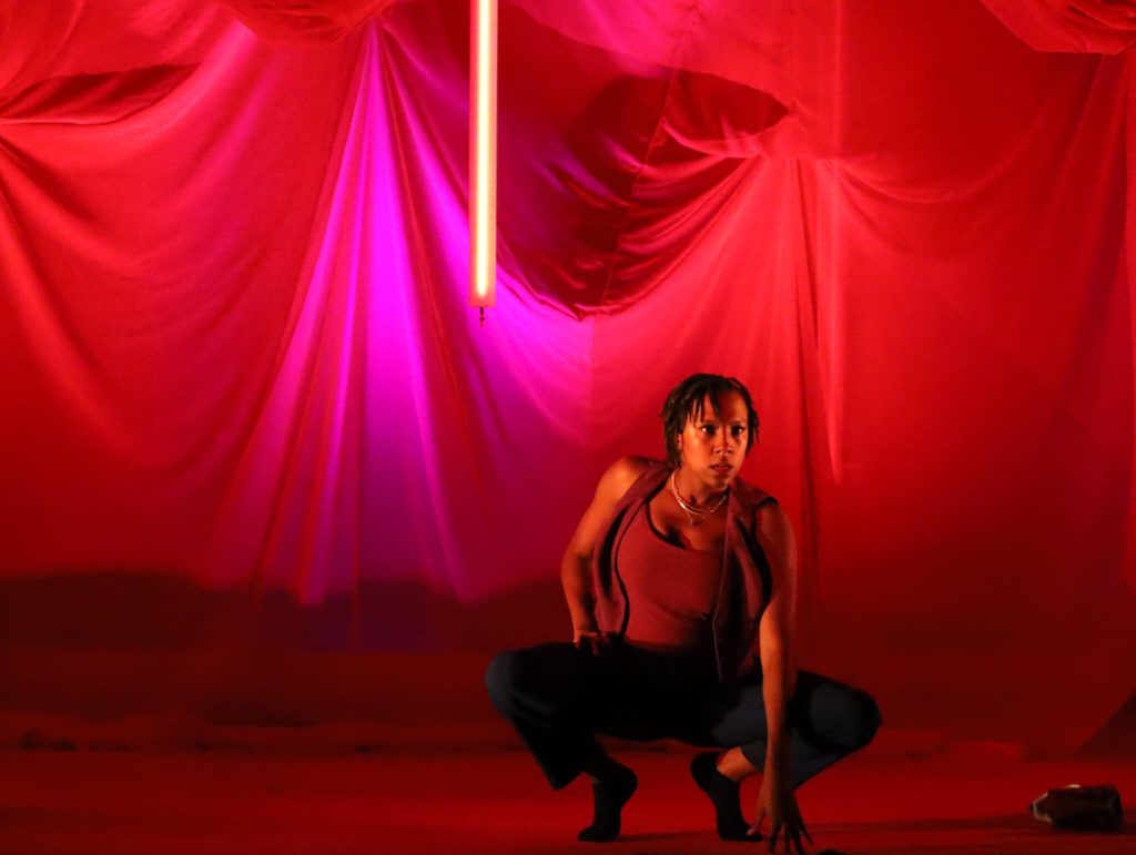 Then down at Off-Broadway’s Minetta Lane Theatre, I took in Jade Anouka’s new solo play Heart (RECOMMENDED), which is being presented by the enterprising Audible Theater. I had previously seen and was impressed by Anouka in her fierce appearances in Donmar Warehouse’s tremendous all-woman trilogy of Shakespeare plays at St. Ann’s Warehouse. Also running at a brisk 70-minutes (like the play discussed above), the similarly autobiographical work depicts the British playwright/performer’s doomed early marriage and her subsequent quest for self-realization and true love in a society that often judges, dismisses, and ostracizes (no spoilers here). The production is more remarkable for Anouka’s dynamic performance and director Ola Ince’s relatively elaborate staging rather than the playwright’s earnest, somewhat predictable storytelling, which at times uncomfortably toggles between prose and verse-like spoken word. Performance-wise, Anouka inhabits her own story with authority and the lithe physicality of a well-trained athlete. It’s a treat to see them in action.