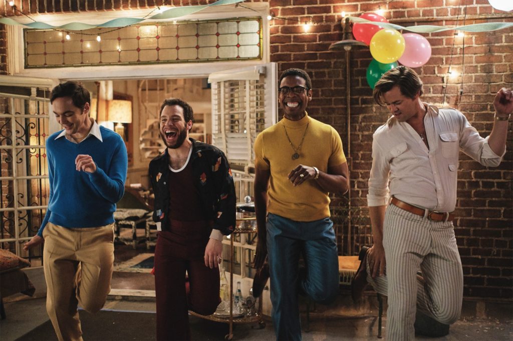 Jim Parsons, Robin de Jesús, Michael Benjamin Washington, and Andrew Rannells in the Netflix adaptation of “The Boys in the Band” by Mart Crowley.